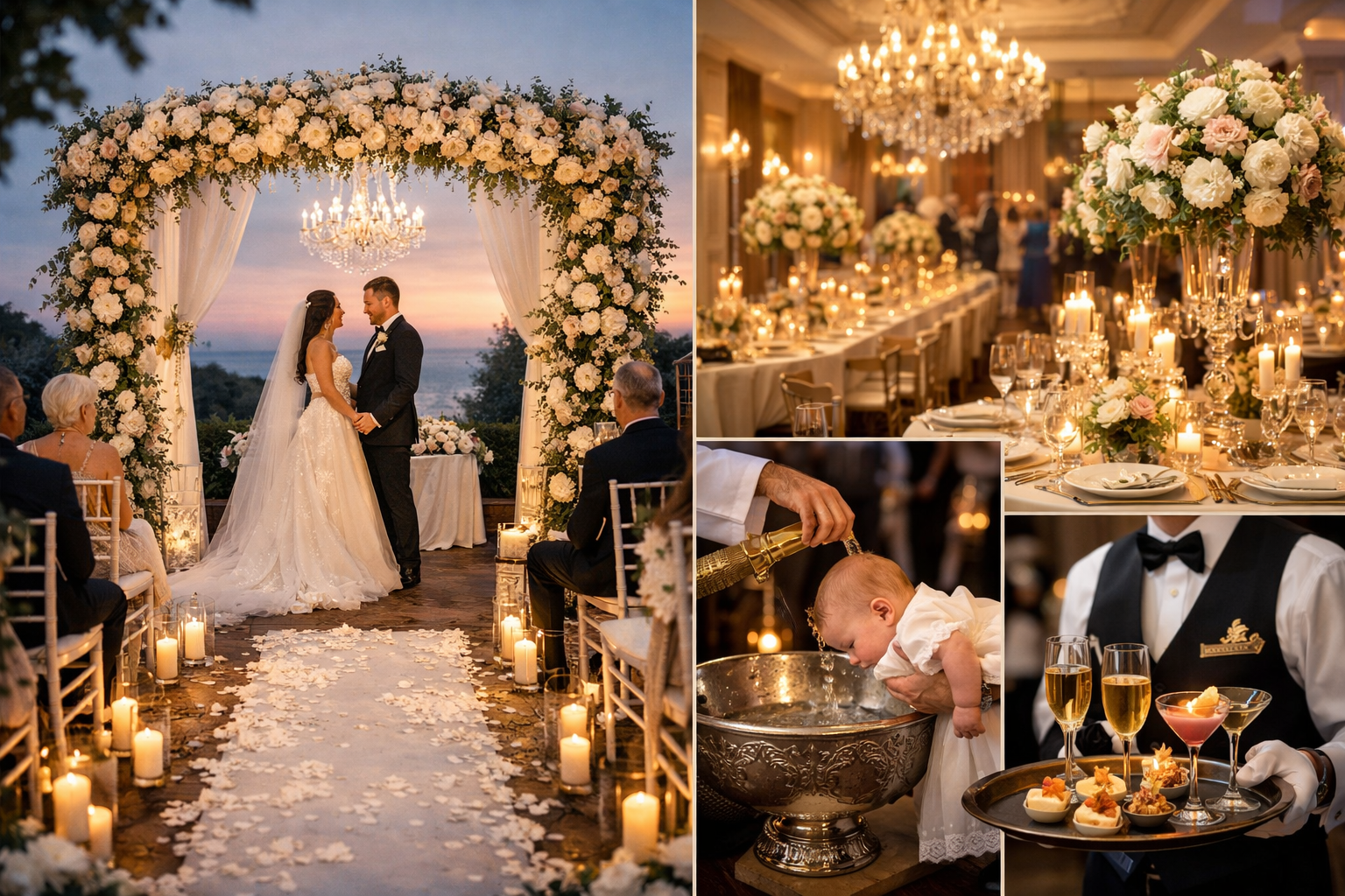 Chaque moment de votre vie mérite d’être célébré avec soin et élégance. Nous transformons vos mariages et baptêmes en expériences uniques, où chaque détail compte.
